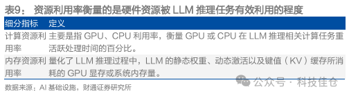 表9:资源利用率衡量的是硬件资源被LLM推理任务有效利用的程度
