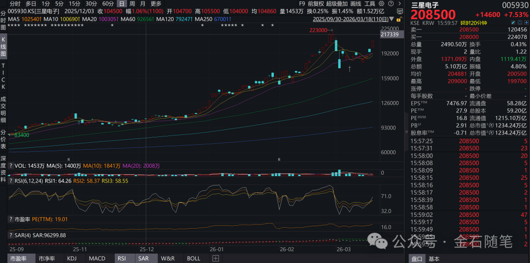韩国两大存储龙头暴涨,三星电子涨7.53%,sk海力士涨8.87%。两大存储龙头暴涨背后,源自其最大供应商英伟达董事长黄仁勋的暴力发言。