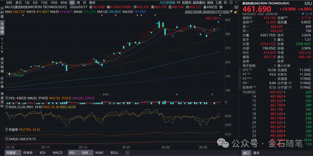 隔夜美股走高,纳指涨0.47%,谷歌涨1.75%;美光涨4.5%。闪迪涨2.35%,西部数据涨近10%,且各大存储龙头盘后继续飞扬。其中,美光直接创新高。