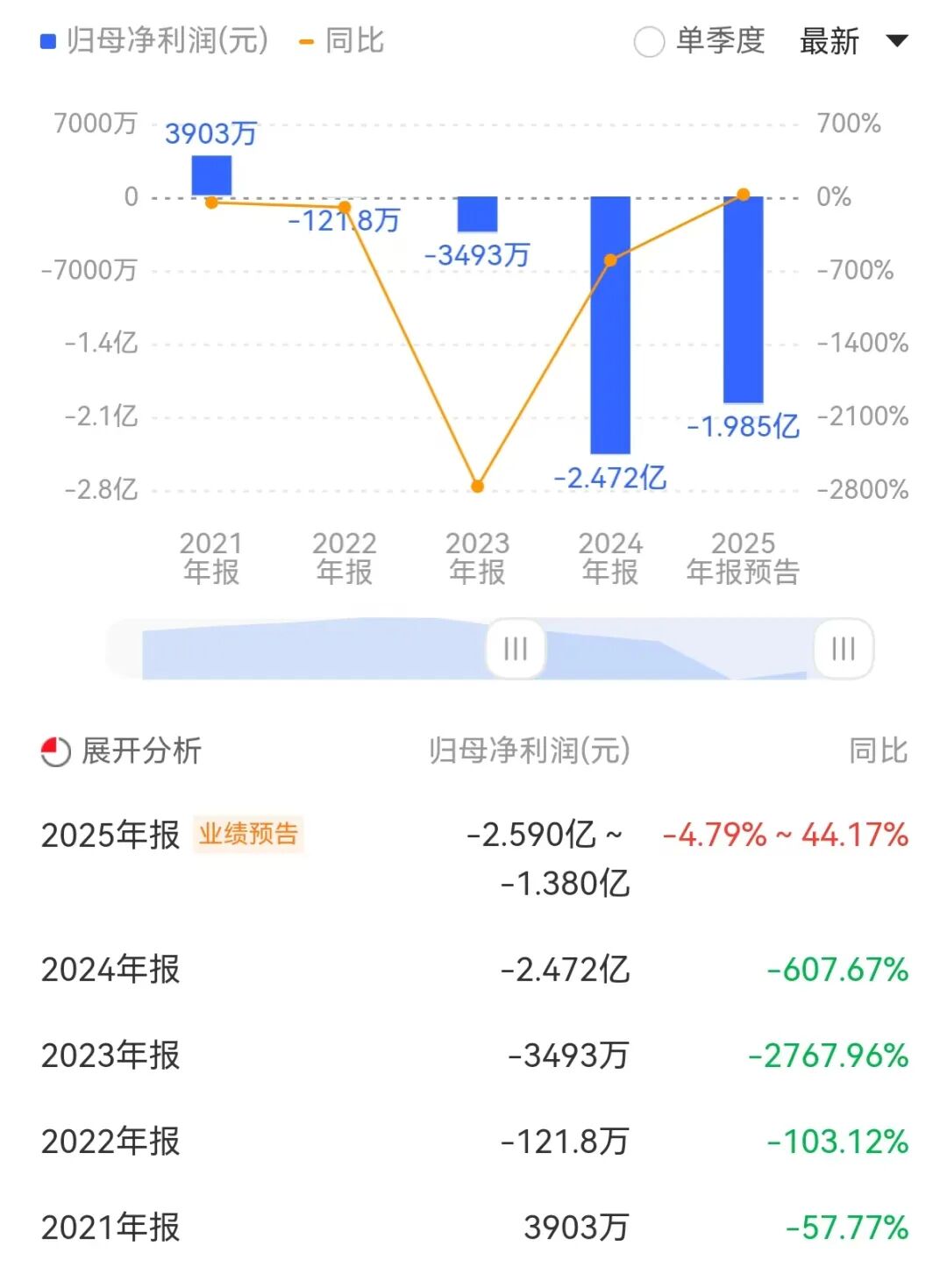 近日,深水海纳披露的2025年业绩预告显示,预计归母净利润为-1.38亿元至-2.59亿元。虽然亏损幅度相较于上年同期的-2.47亿元有所收窄(最多收窄44.17%),但这已是公司连续第四年交出亏损成绩单。