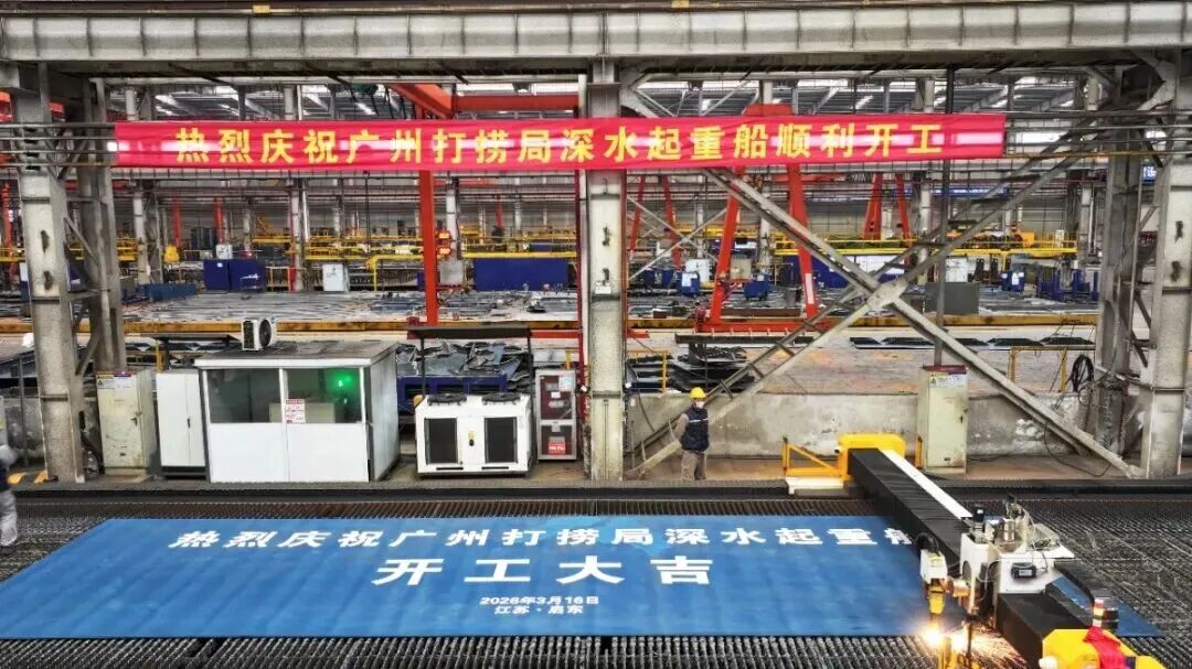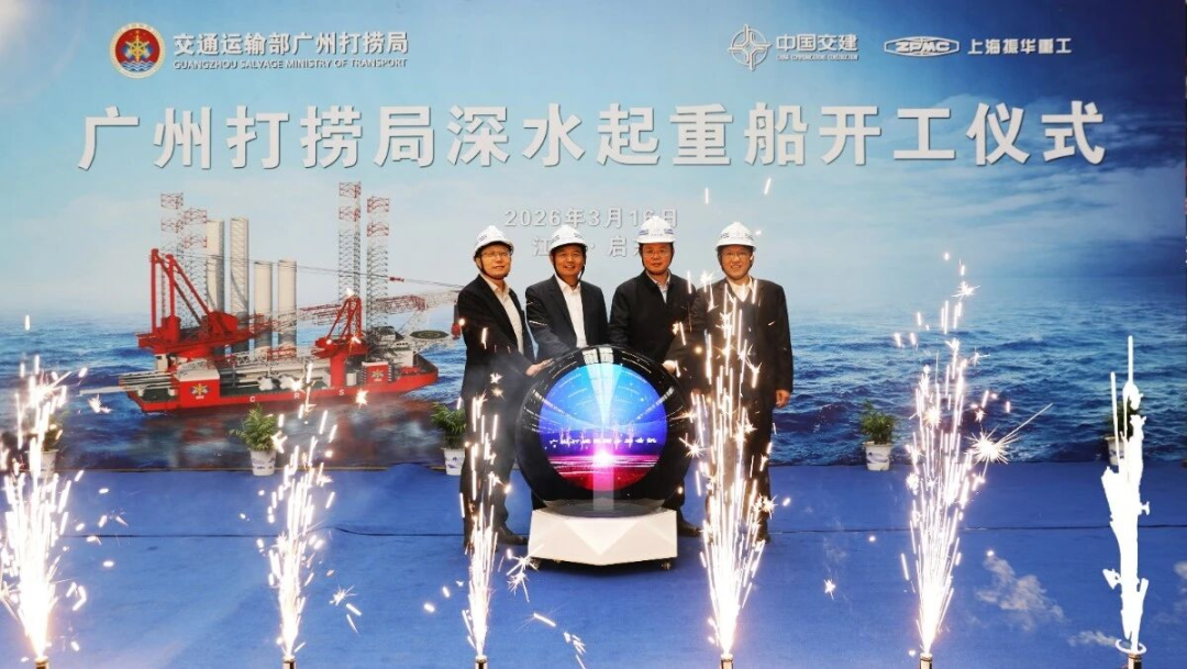 3月16日,上海振华重工集团为广州打捞局建造的国内桩腿最长、作业最深的插桩式深水起重船在振华海工举行开工仪式。广州打捞局副局长李秀友,中国船级社江苏分社副总经理杭仲九,中国船舶集团第七O八研究所副所长朱建璋,上海振华重工集团副总裁、总工艺师陆汉忠出席仪式。