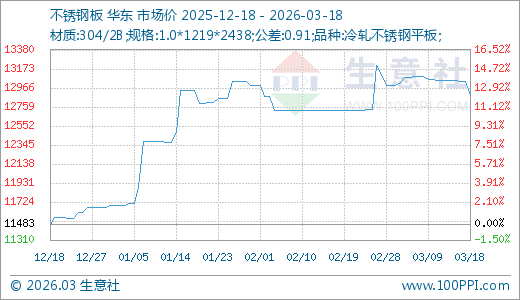 据生意社监测,不锈钢板03月18日最新价格12883.33元/吨,最近90天上涨12.19%。