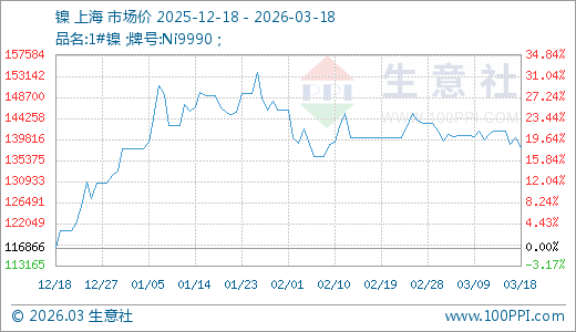 据生意社监测,镍03月18日最新价格138100.00元/吨,最近90天上涨18.17%。