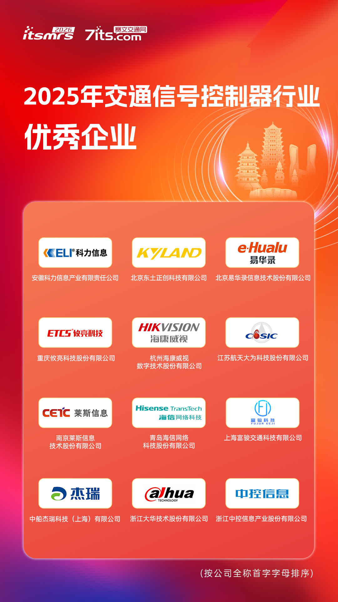 其中,“2025年交通信号控制器行业优秀企业”以2025年国内道路交通信号机出货量数据为唯一指标进行评定,已连续统计多年,受到了业界的广泛认可与关注。