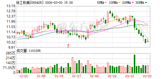 证券时报·数据宝统计显示,徐工机械今日收盘价为10.41元,上涨1.56%,日换手率为1.22%,成交额为11.56亿元,全天主力资金净流入1498.73万元,近5日该股累计下跌7.96%,近5日资金合计净流出2194.76万元。