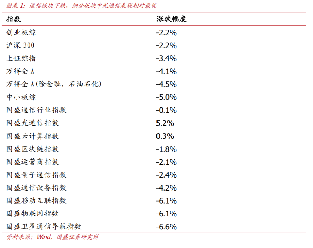 2. 行情回顾:通信板块下跌,光通信表现相对最优