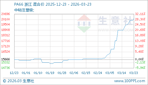 据生意社监测,PA6603月23日最新价格20200.00元/吨,最近5天上涨3.41%,10天上涨6.69%,20天上涨24.95%,30天上涨28.12%,60天上涨31.74%。