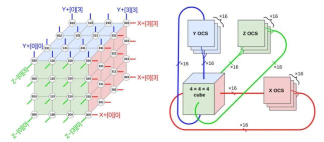 图表9:48个OCS与64个cube(共4096个TPU芯片)相连形成一个大型的超级计算系统