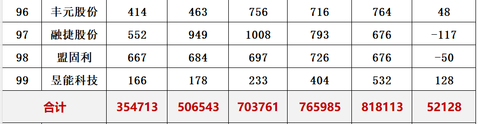 与光伏产业形成鲜明对比的是,过往来年,储能行业的整体员工规模大幅增长,不少龙头企业一直在想方设法招兵买马。看下表,黑鹰统计发现,从2020年-2024年,99家储能上市企业员工规模从35万人增加到了约82万人,增长了47万人。
