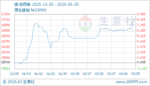 镁03月25日最新价格17050.00元/吨,最近30天上涨3.65%,90天上涨8.60%。