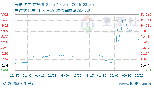 03月25日豆粕3268.00元/吨 20天上涨4.54%