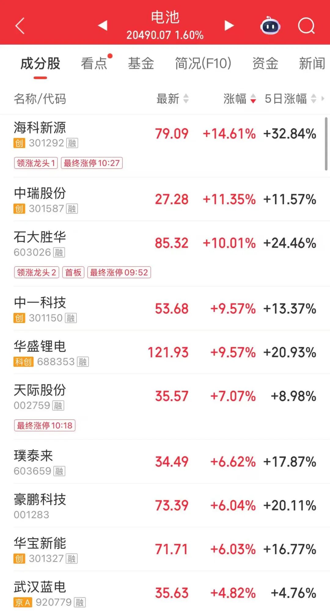 锂电池板块逆势走强,融捷股份3连板,丽岛新材、衢州东峰、大东南、石大胜华等涨停。