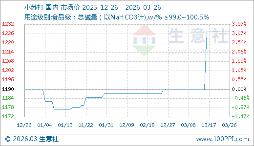 03月26日小苏打1227.50元/吨 60天上涨3.59%