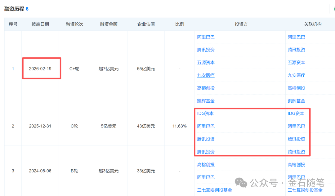 而在2025年12月31日融资5亿美元后,公司在2026年2月19日再度进行新一轮融资,融资额7亿美元,据天眼查投后估值55亿美元。不过,也有市场消息称,此次融资后估值已经来到100亿美元。