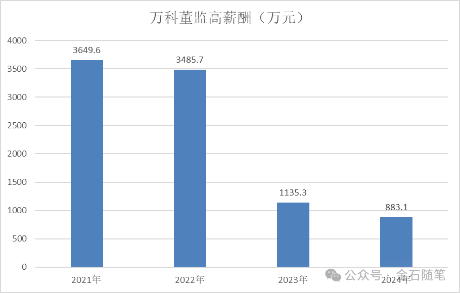 金石随笔统计wind数据,朱旭2021年至2024年薪酬分别为434.8万、430万、104.5万以及103.3万,四年薪酬1072.6万元。郁亮四年薪酬分别为154.7万、393.5万、127万、33.6万,合计708.8万元。
