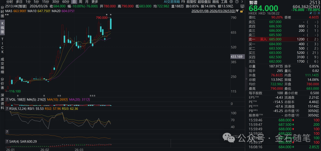 其实,kimi估值大爆发背后,离不开二级市场对港股两只大模型公司的极力追捧,一是智普,一是minimax。今年以来智谱股价暴涨488%,市值来到3000亿上方;而minimax今年涨496%,市值也超3000亿港元。