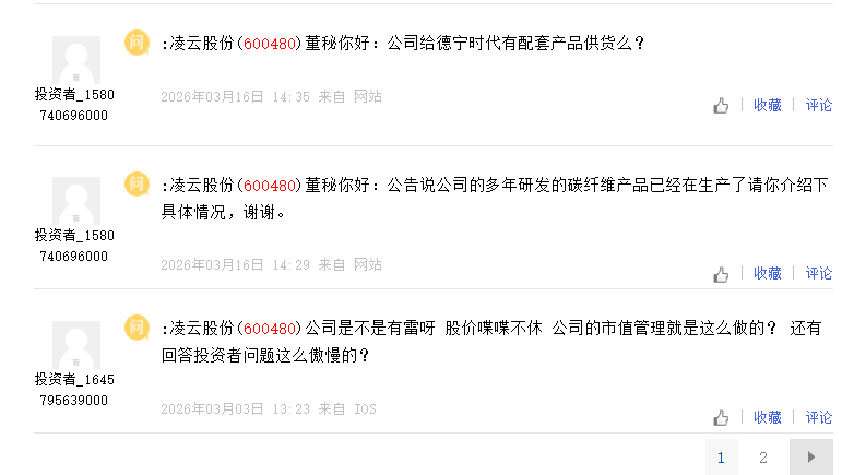 值得注意的是,公司在投资者互动平台的互动频率较低,近期12条提问仅回复3条,回复率仅为25%。例如,关于“如何看待周线8连阴,市值管理工作是否照常进行”的疑问,目前尚未获得回应。更早前,3月3日有投资者曾质问“公司是不是有雷呀?股价喋喋不休,公司的市值管理就是这么做的?还有回答投资者问题这么傲慢的?”,至今亦无答复。