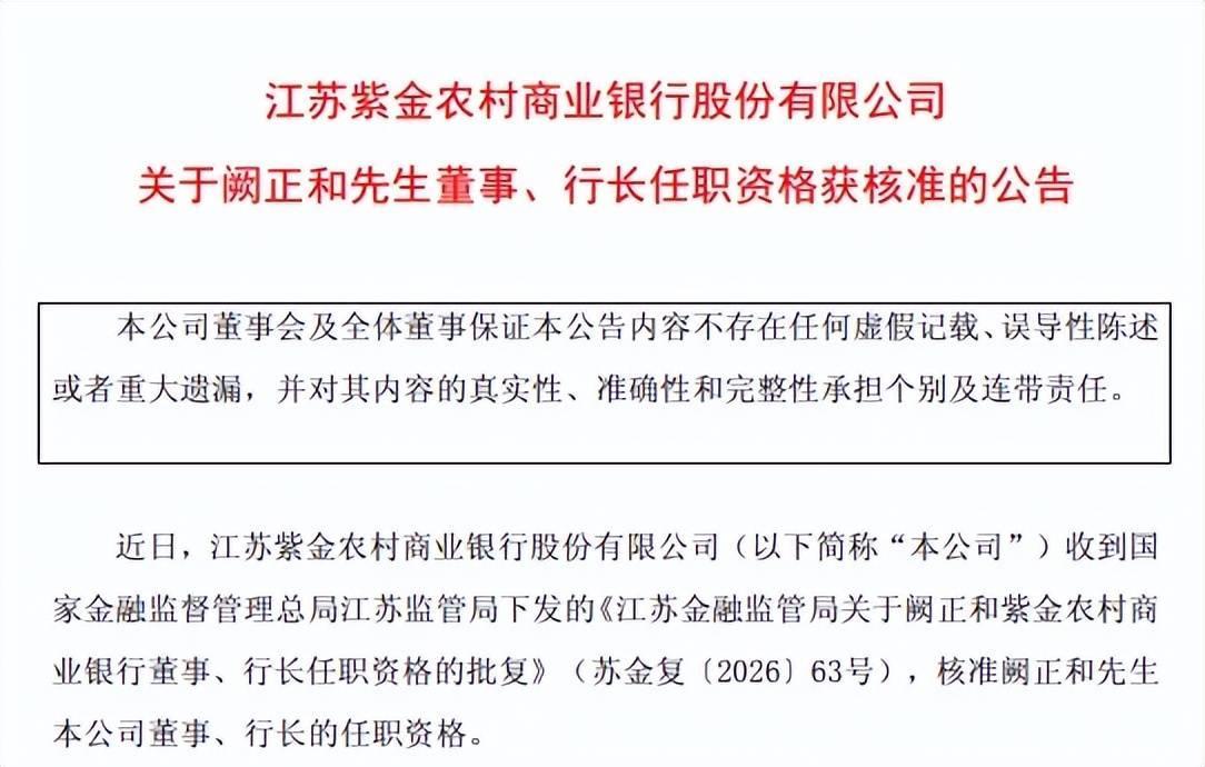 行长任职资格获批。3月16日,紫金银行公告称江苏监管局核准阙正和公司董事、行长的任职资格,这意味着阙正和正式成为行长,担起带领公司前进的重担。
