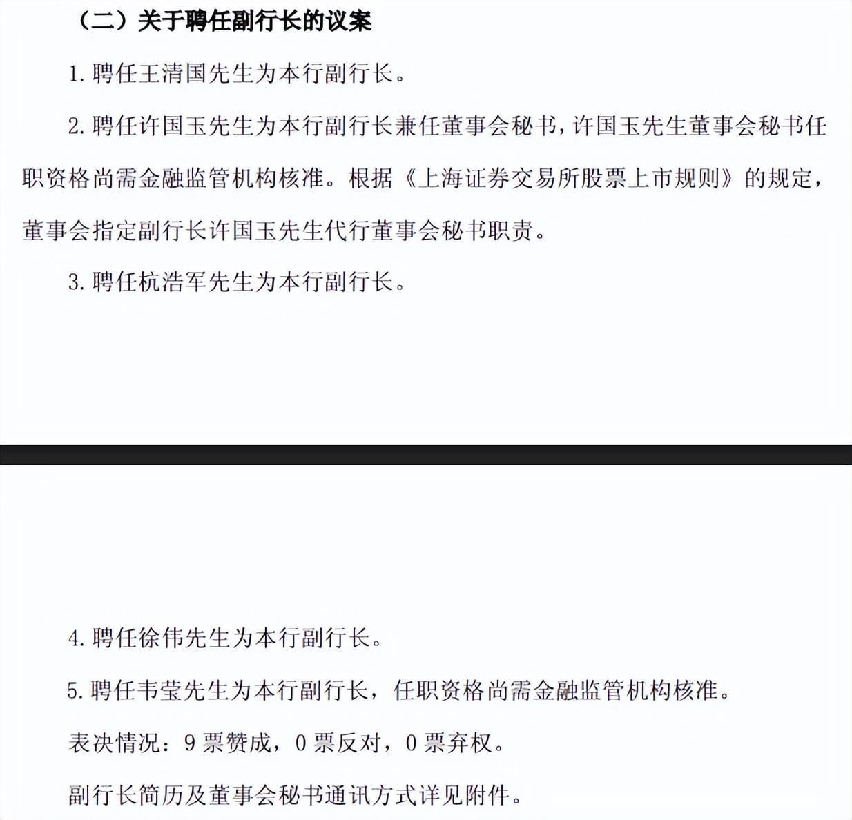 原行长离任,年薪最高。同日,紫金银行董事会选举邵辉为董事长,聘任阙正和为行长,兼任首席合规官,聘任许国玉为副行长兼董事会秘书,聘任王清国、杭浩军、徐伟、韦莹为副行长,彼时阙正和、许国玉(董事会秘书)、韦莹任职资格尚待核准。