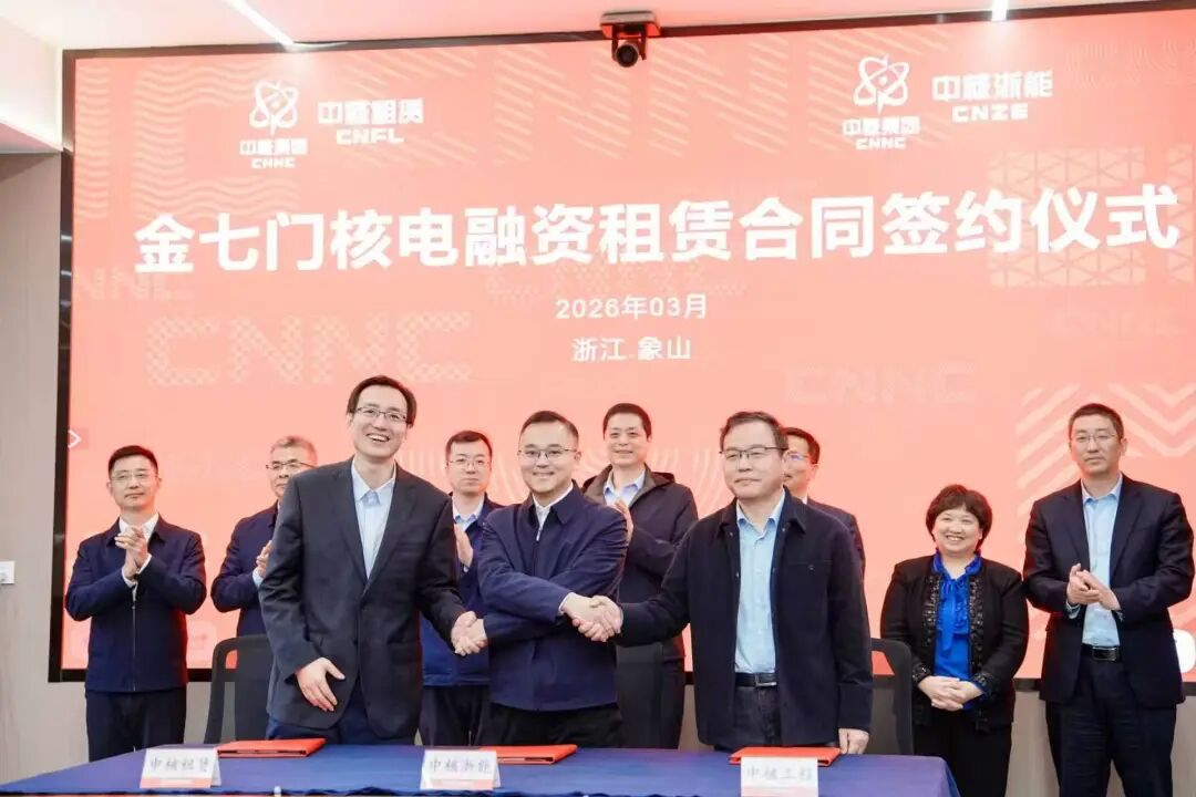 3月26日,中核集团所属中核融资租赁有限公司、中核工程有限公司、中核浙能能源有限公司在浙江省象山县金七门核电项目现场举行签约仪式,成功签署金七门核电项目融资租赁合同。此次签约标志着中核集团在核电领域的首单融资租赁直租业务正式落地,实现了国内核电直租业务“从0到1”的历史性突破。
