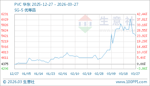 据生意社监测,PVC03月27日最新价格5440.00元/吨,最近20天上涨11.00%,30天上涨15.50%,60天上涨17.32%,90天上涨24.34%。