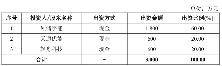 与此同时,昱能科技还同步发布另一则公告,为进一步拓展储能市场份额,其子公司江苏领储宇能科技有限公司(以下简称“领储宇能”),拟联合关联方天通优能、非关联方杭州轻舟科技有限公司(以下简称“轻舟科技”),共同出资设立合资公司。