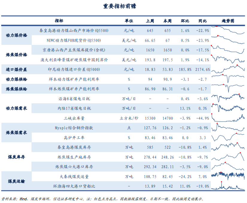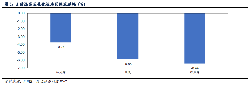 ⚫ 本周动力煤板块下跌3.71%,炼焦煤板块下跌6.44%,焦炭板块下跌5.88%。