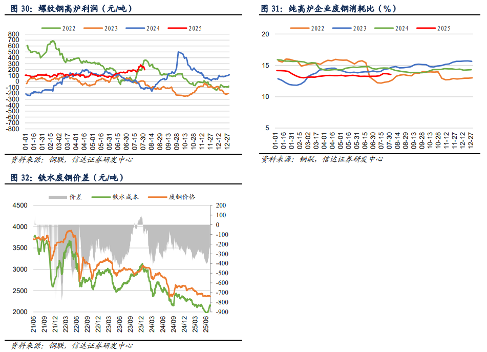 ⚫ 铁废价差:截至7月31日,铁水废钢价差为-219.4元/吨,周环比增加9.6元/吨。