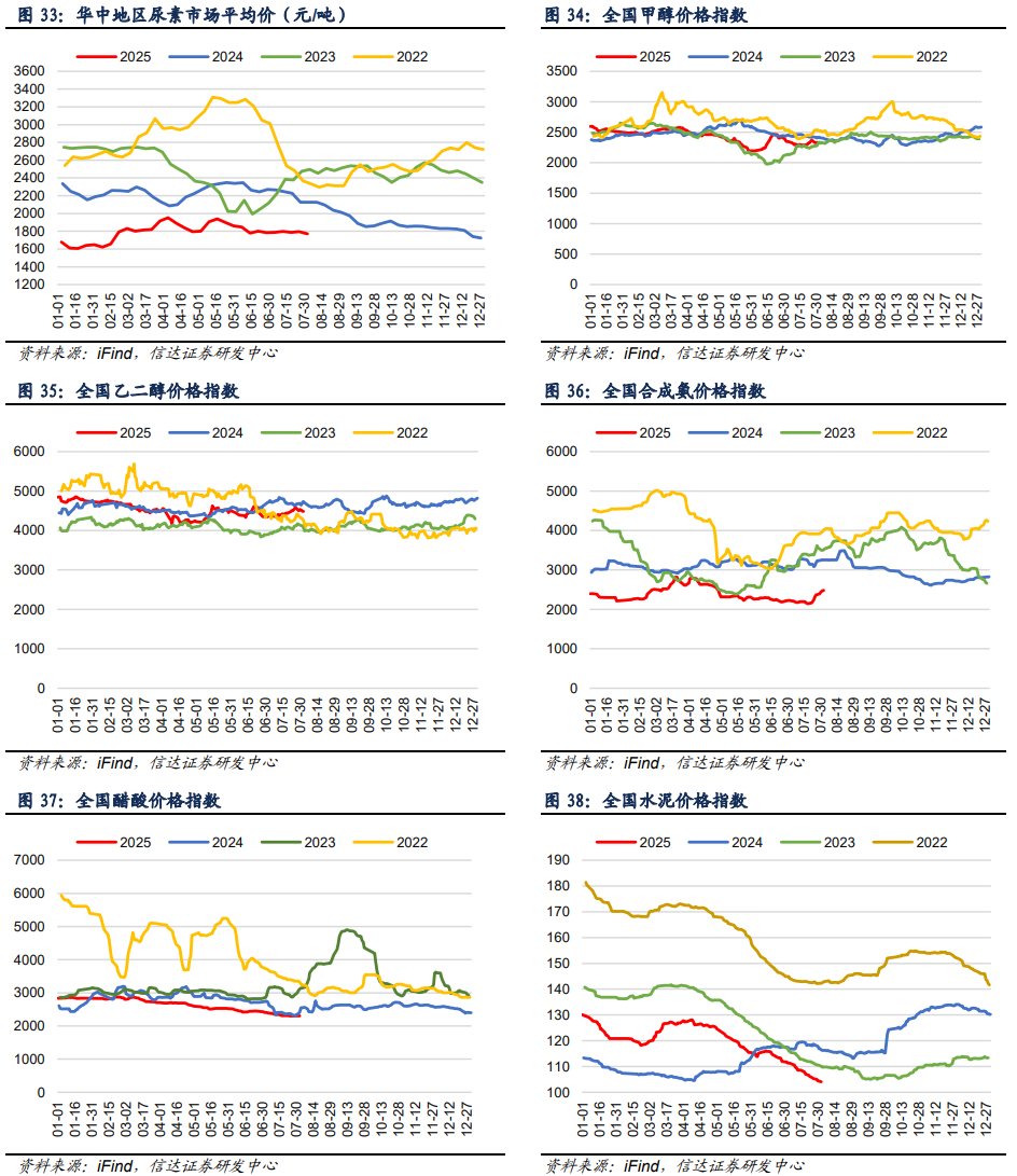 ⚫ 截至8月1日,全国甲醇价格指数较上周同期下跌45点至2323点。