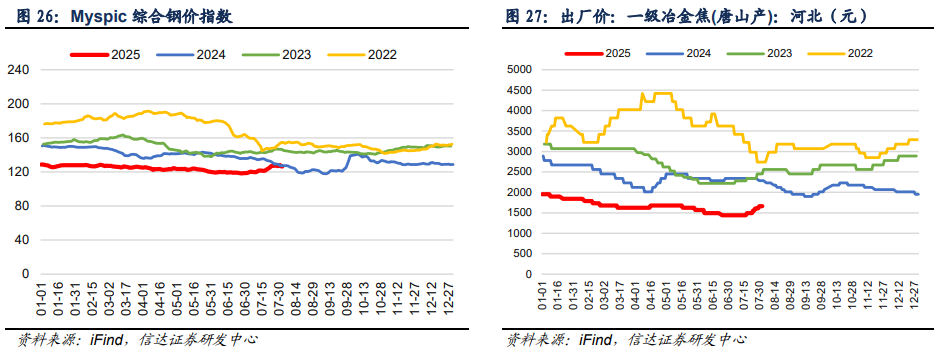 ⚫ 高炉开工率:截至8月1日,全国高炉开工率83.5%,周环比持平。