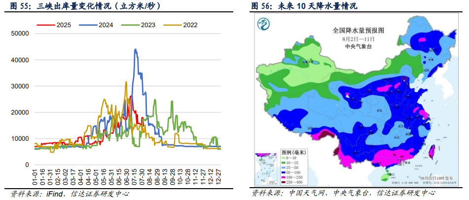 ⚫ 截至8月1日,三峡出库流量为14700立方米/秒,周环比下降3.92%。