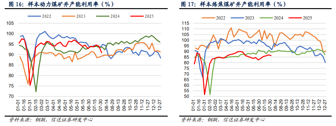 ⚫ 截至8月1日,样本炼焦煤矿井开工率为86.31%,周环比下降0.6个百分点。