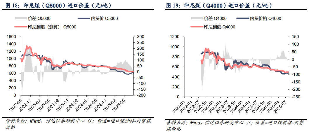 ⚫ 截至8月1日,5000大卡动力煤国内外价差53.8元/吨,周环比上涨35.0元/吨;4000大卡动力煤国内外价差31.6元/吨,周环比上涨41.0元/吨。