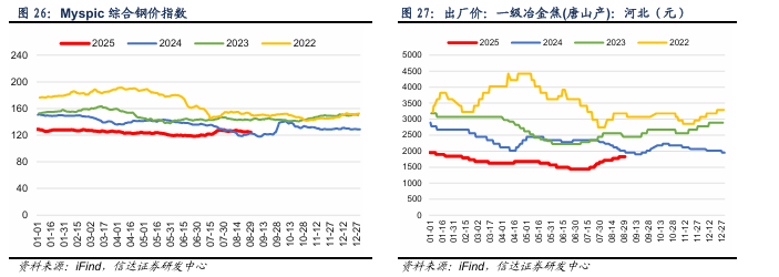 ⚫ 截至8月29日,Myspic综合钢价指数124.6点,周环比下跌0.18点。