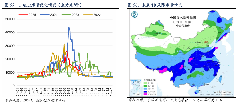 ⚫ 截至8月29日,三峡出库流量为17400立方米/秒,周环比增加52.63%。