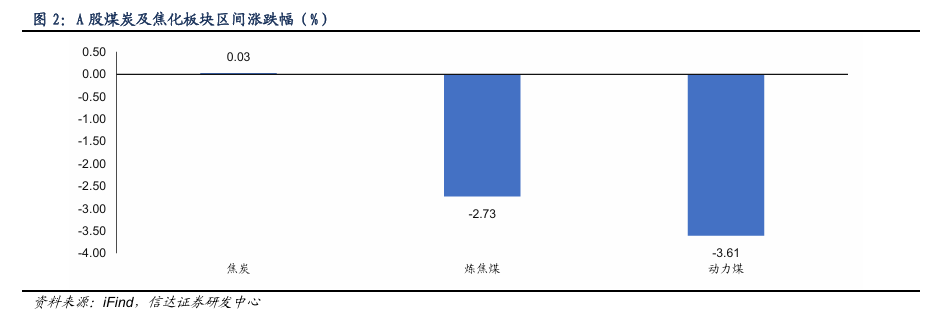 ⚫ 本周动力煤板块下跌3.61%,炼焦煤板块下跌2.73%,焦炭板块上涨0.03%。