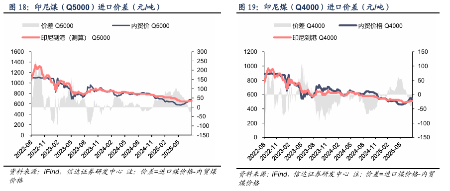⚫ 截至8月29日,5000大卡动力煤国内外价差-1.5元/吨,周环比上涨22.8元/吨;4000大卡动力煤国内外价差-12.8元/吨,周环比上涨25.5元/吨。
