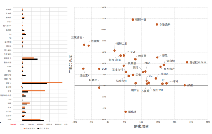 除了周期底部带来的反弹机会,成长性方向同样不容忽视。报告指出,自主可控和供给替代缺口将是未来几年化工投资的关键主线。