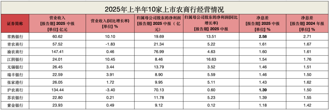 今年上半年,10家上市农商行的整体业绩表现要好于城商行和国有行。