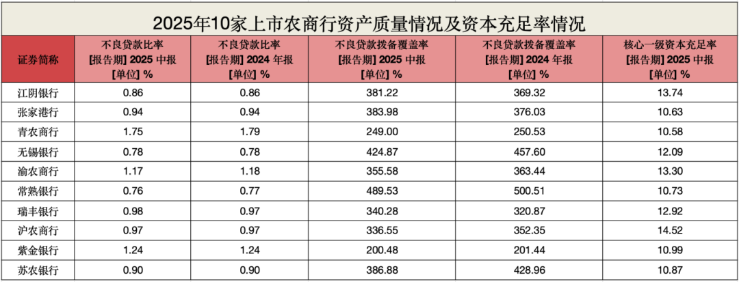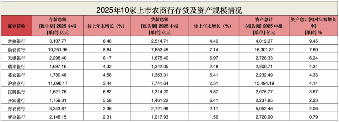2025年上半年,10家农商行的总资产基本都处于个位数增长。