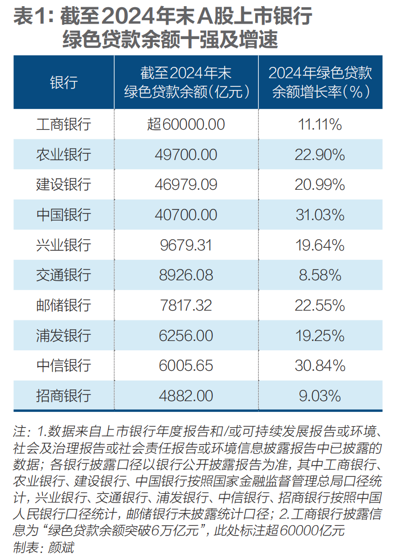 截至2024年末,42家A股上市银行绿色信贷余额超过27万亿元,同比增长约20%。绿色贷款规模持续扩张,结构特征日益清晰,市场逐渐形成“国有大行稳规模、股份制银行强活力、区域银行快增长”的多层次发展格局。国有大行凭借其战略定位保障绿色信贷的总体供给与稳定,股份制银行依托市场化机制和产品创新能力不断拓展新兴领域,而中小银行则依托地方优势和灵活机制实现“弯道超车”。各类银行协同发展,使绿色金融资源能够在国家战略性项目和区域特色产业之间实现互补与流动。