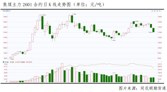 本周一(9月29日),黑色建材板块整体表现疲软,焦煤期货主力合约JM2601报收1154元/吨,较前一交易日结算价下跌60.5元/吨,跌幅达4.98%,期价连续两个交易日大幅回落。那么是什么原因导致近日焦煤期货价格骤然转跌?后市还将继续走弱吗?
