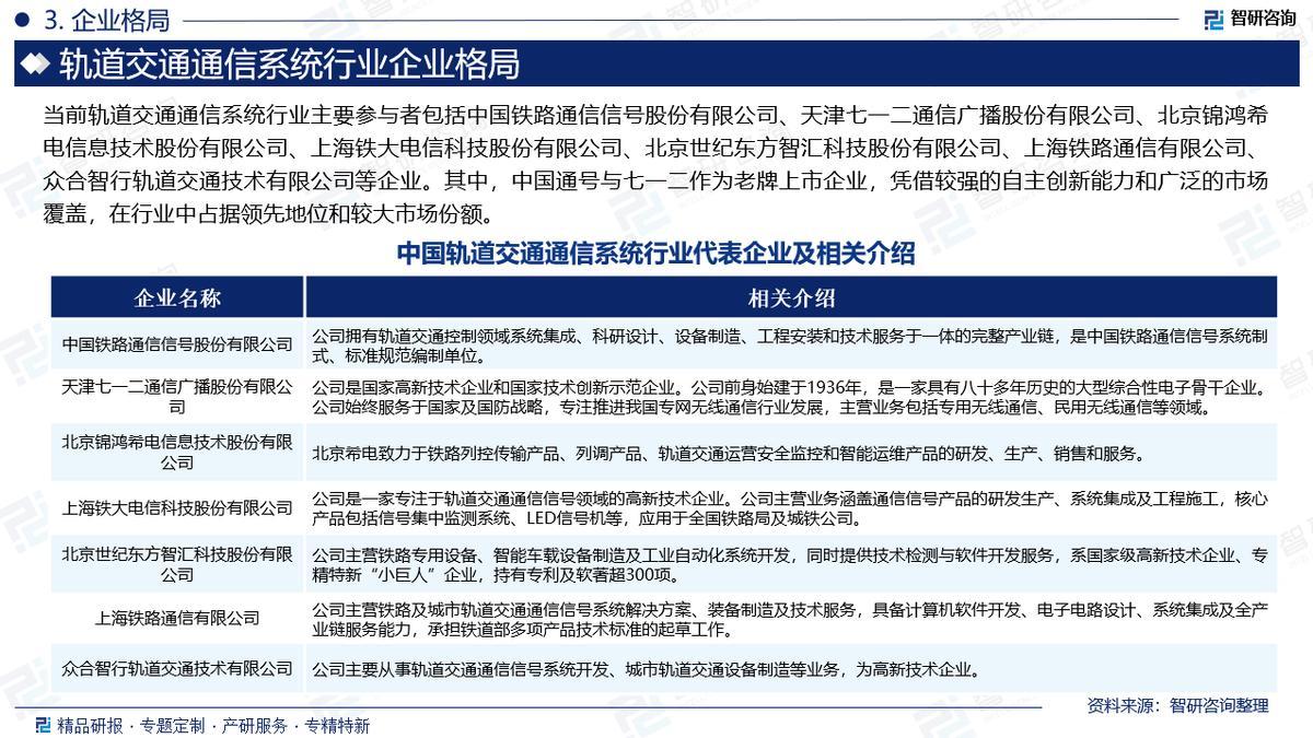 《2025-2031年中国轨道交通通信系统行业市场运营态势及发展前景研判报告》基于最新、最全的中国产业链数据,融合权威官方统计、深度企业调研、资本市场洞察及全球信息,通过严格的智能处理和独家算法验证,确保分析结论高度可靠、透明且可追溯。