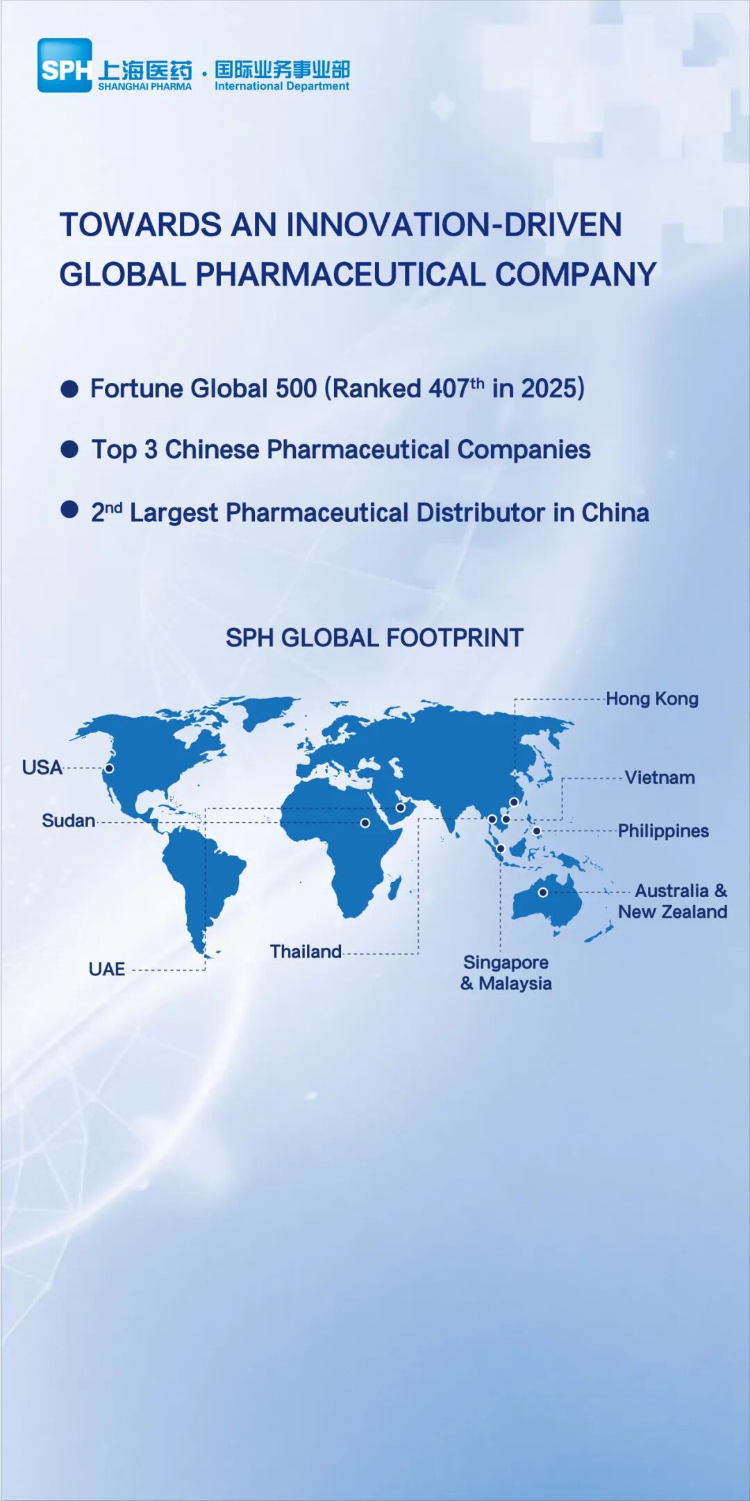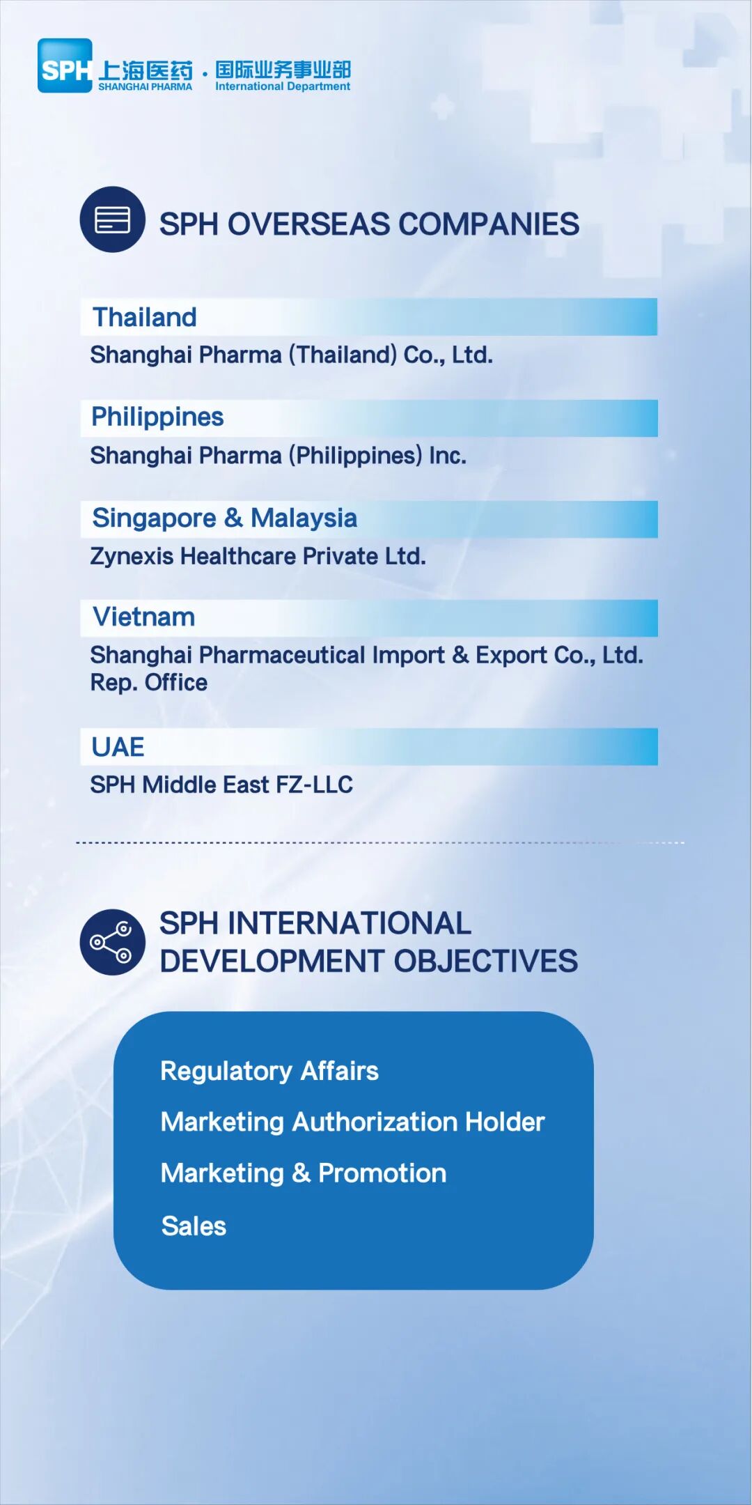 上海医药国际业务事业部(上药进出口)全面负责集团国际化战略的推进与实施,通过构建覆盖东南亚、中东、北非等关键区域的本地化运营网络,系统推进海外市场拓展、产品管线布局及供应链体系建设。目前已在菲律宾、越南、新加坡、泰国、阿联酋、苏丹等国设立分支机构或生产基地,持续提升上海医药在国际市场的产品渗透与业务影响力。