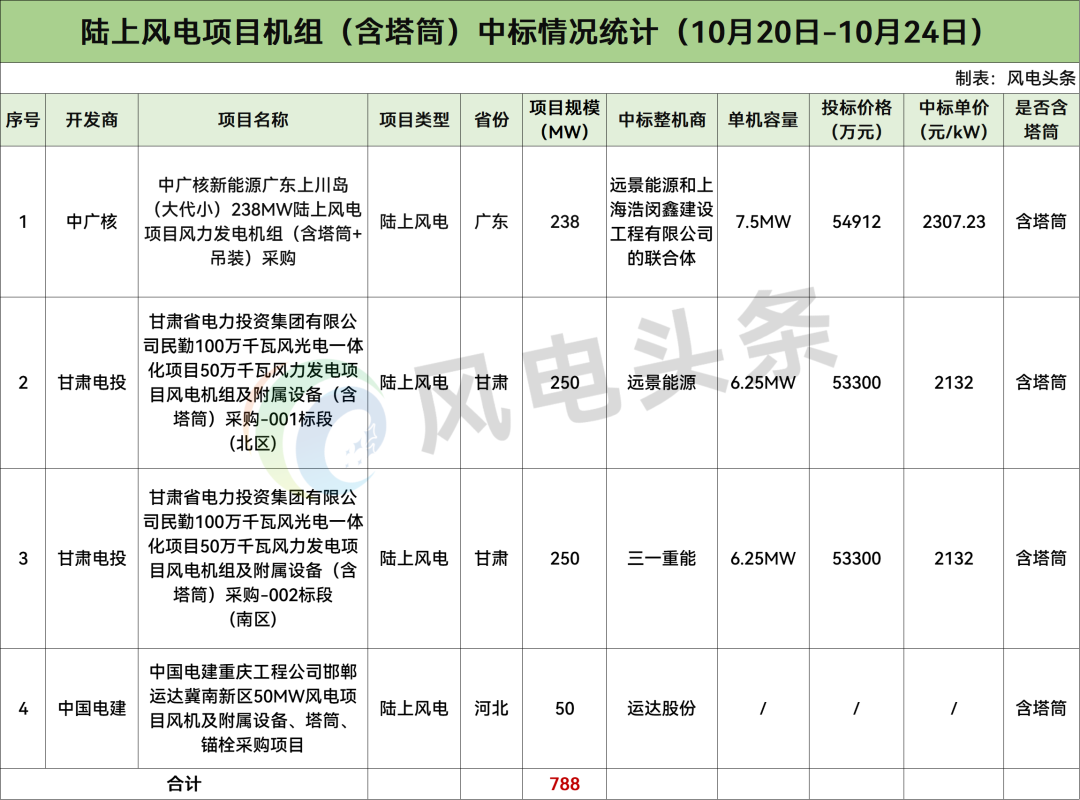 中广核开标238MW,由远景能源和上海浩闵鑫建设工程有限公司的联合体中标。