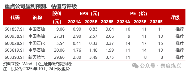 投资建议:推荐以下三条主线:1)石化行业“反内卷”政策风起,建议关注行业龙头且业绩稳定性强、持续高分红的中国石油、中国石化;2)油价有底,石油企业业绩确定性高,叠加高分红特点,估值有望提升,建议关注产量持续增长且桶油成本低的中国海油;3)国内鼓励油气增储上产,建议关注产量处于成长期的新天然气、中曼石油。