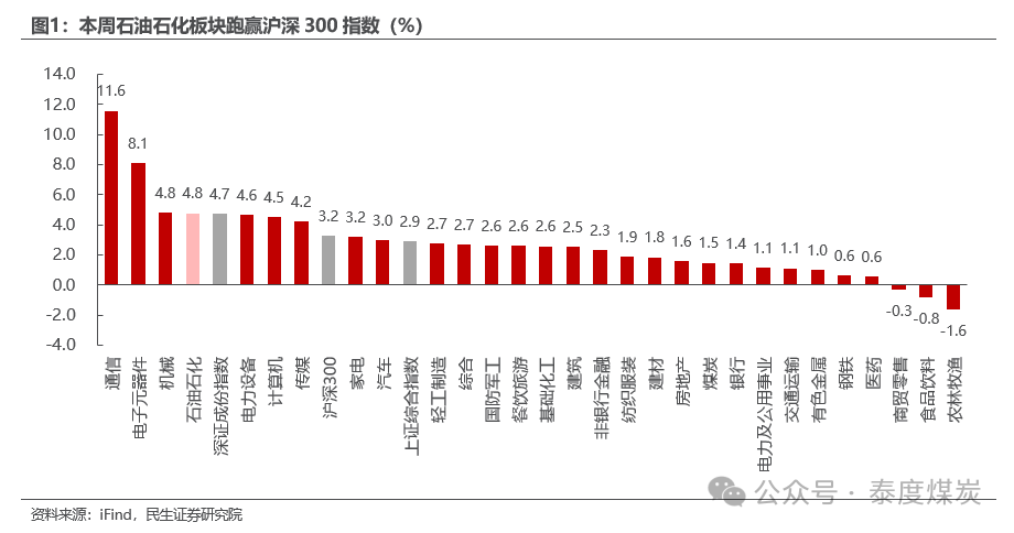 截至10月24日,本周中信石油石化板块上涨4.8%,沪深300上涨3.2%,上证综指上涨2.9%,深证成指上涨4.7%。