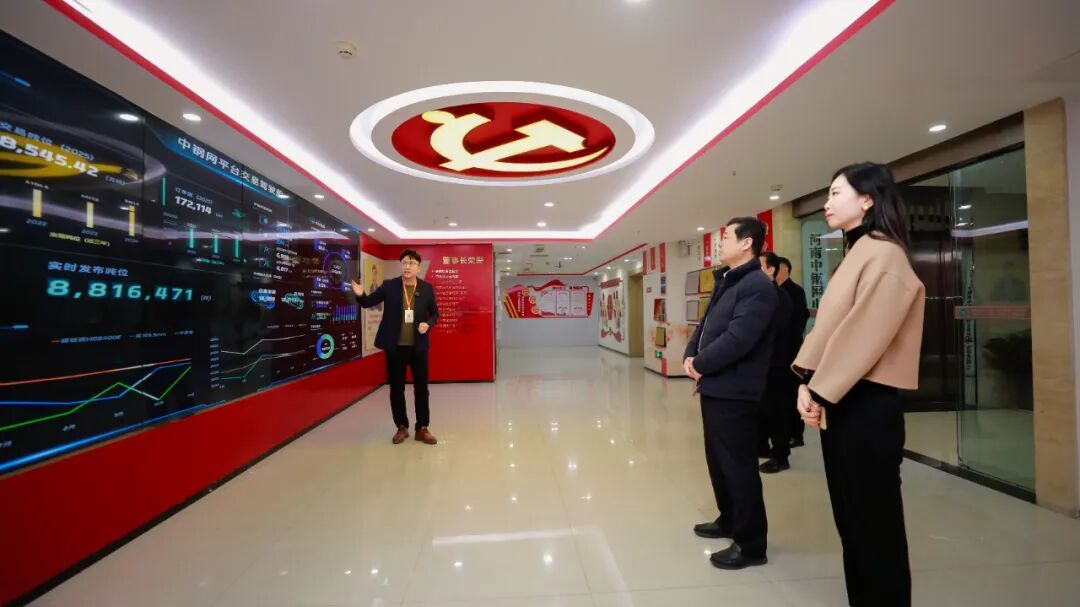 在姚红超的陪同下,韩高贵董事长一行首先深入中钢网运营一线。从记录发展历程与企业文化的展厅,到高效运转、数据驱动的运营中心,再到充满活力的新媒体直播基地,来访嘉宾直观感受到了中钢网作为钢铁产业互联网领军企业的创新氛围与科技实力。每一个场景,都生动诠释着中钢网如何通过技术赋能与模式创新,重塑钢铁行业的交易与服务生态。