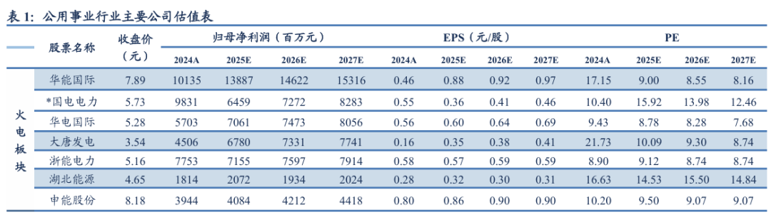 建议关注:全国性煤电龙头:国电电力、华能国际、华电国际等;电力供应偏紧的区域龙头:皖能电力、新集能源、浙能电力、申能股份、粤电力 A 等;水电运营商:长江电力、国投电力、川投能源、华能水电等;同时,煤电设备制造商和灵活性改造技术类公司也有望受益于煤电新周期的开启,设备制造商有望受益标的:东方电气;灵活性改造有望受益标的:华光环能、青达环保、龙源技术等。