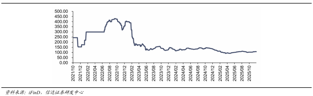 ⚫内陆17省电厂库存、日耗及可用天数:截至12月4日,内陆17省煤炭库存10106.8万吨,较上周下降100.6万吨,周环比下降0.99%;内陆17省电厂日耗为386.2万吨,较上周增加32.1万吨/日,周环比上升9.07%;可用天数为26.2天,较上周下降2.7天。